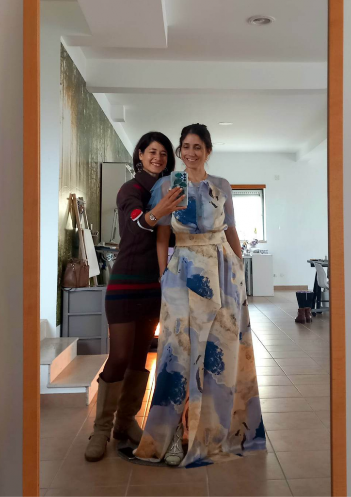 A Eva apaixonou-se por um conjunto, que ia integrar a coleção “Crystal”, mas, que só existia no desenho e na minha cabeça… Foi uma conexão incrível, entre ela e a sua Ammonite.
