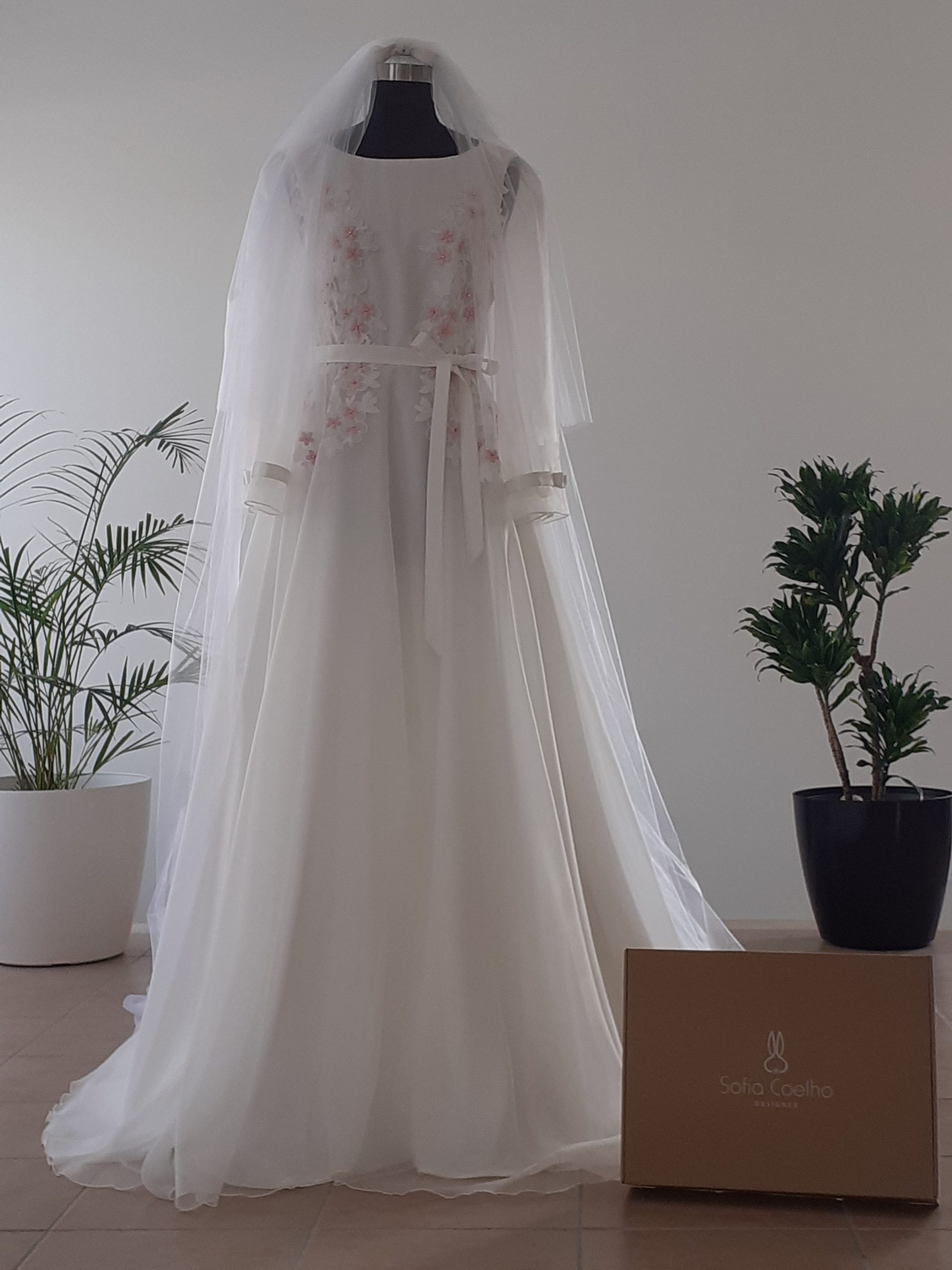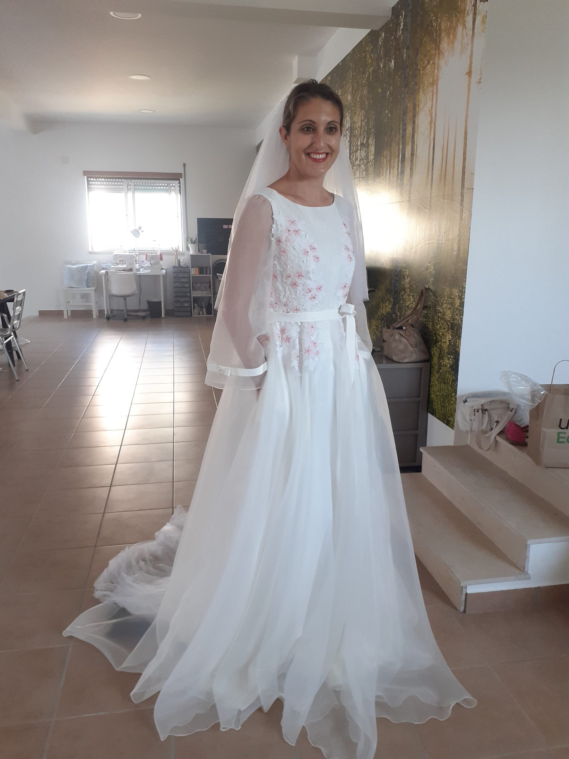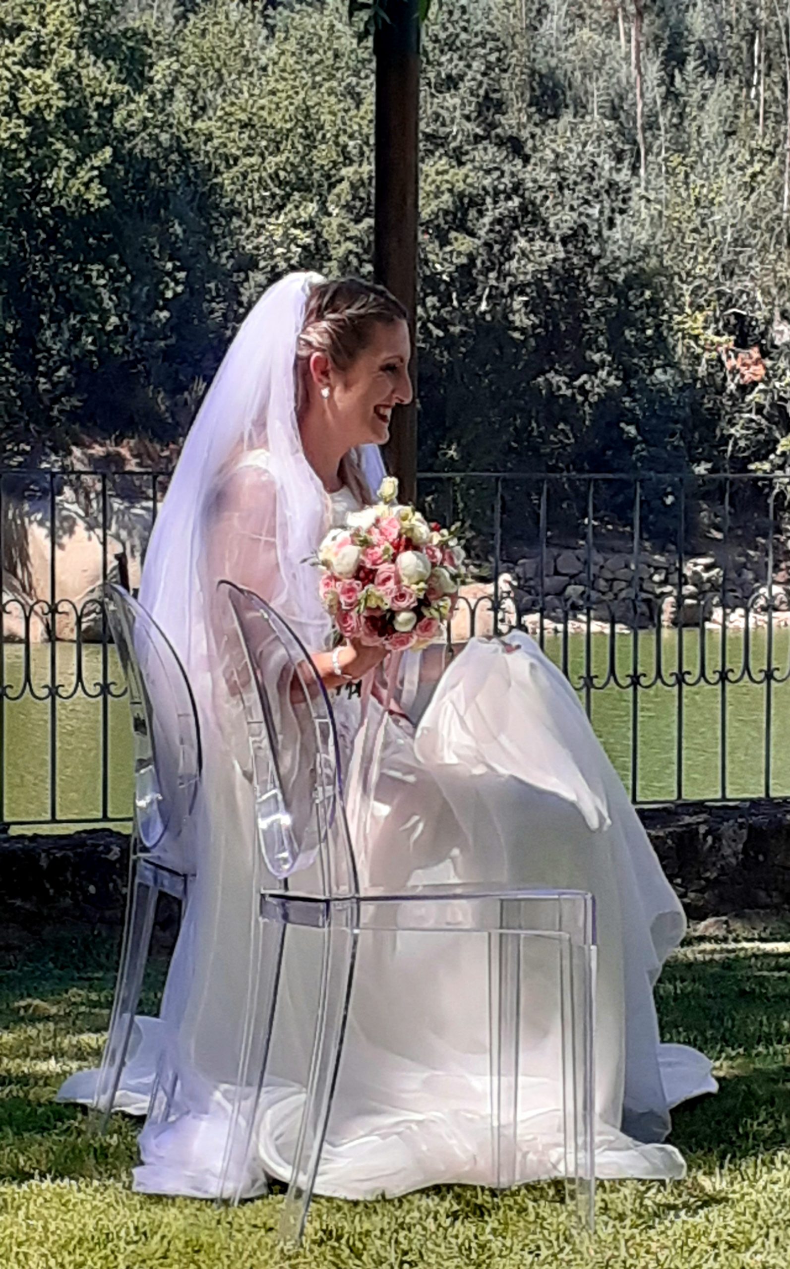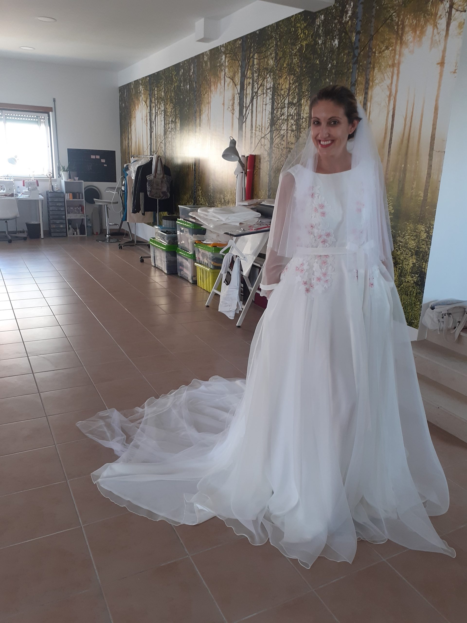 Mas, esta peça foi um desafio, porque a Júlia não vive em Portugal e só experimentou e viu o vestido na semana do casamento.