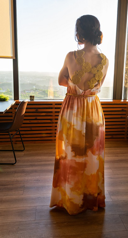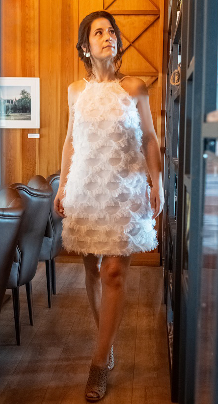 Os cordões, os nós e os fios, trabalhados de forma manual e em tear circular, surgem em lugar de destaque como fonte de inspiração para este “Movimento Delicado”… Conferindo ao rústico um aspeto mais sofisticado onde os tecidos fluídos e leves proporcionam um jogo de movimentos entre as transparências e franjas que esvoaçam.